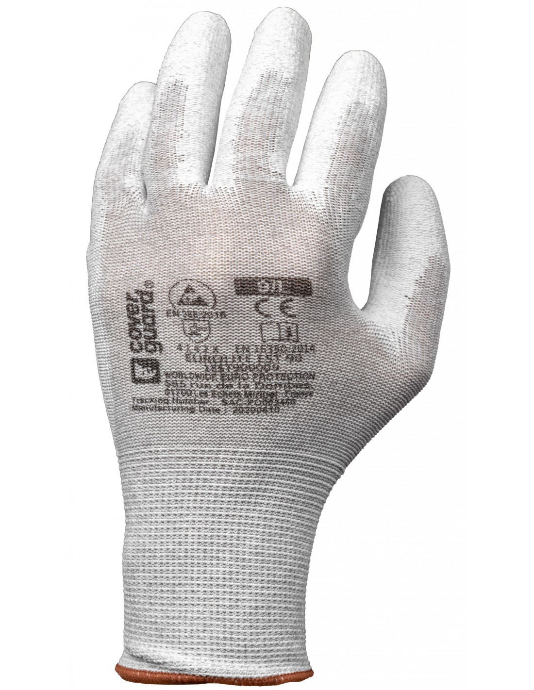 Protection contre les décharges antistatiques assurée par la composition du gant (polyester / carbone)