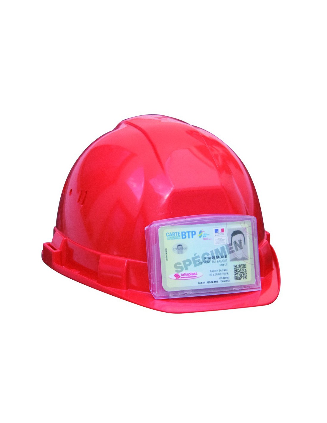 Porte badge pour casques de chantier, ABS incolore, fixation par adhésif, coulisse pour insertion de la carte professionnelle
