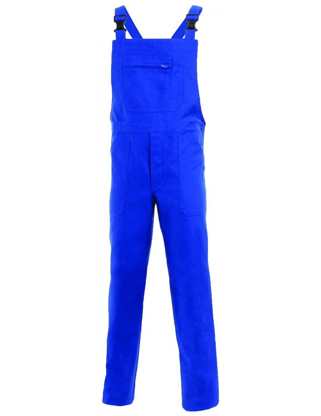 Forme générale Bretelles réglables par boucle, bavette avec poche fermée par glissière, fermeture latérale par bouton, braguette à boutons sous patte,