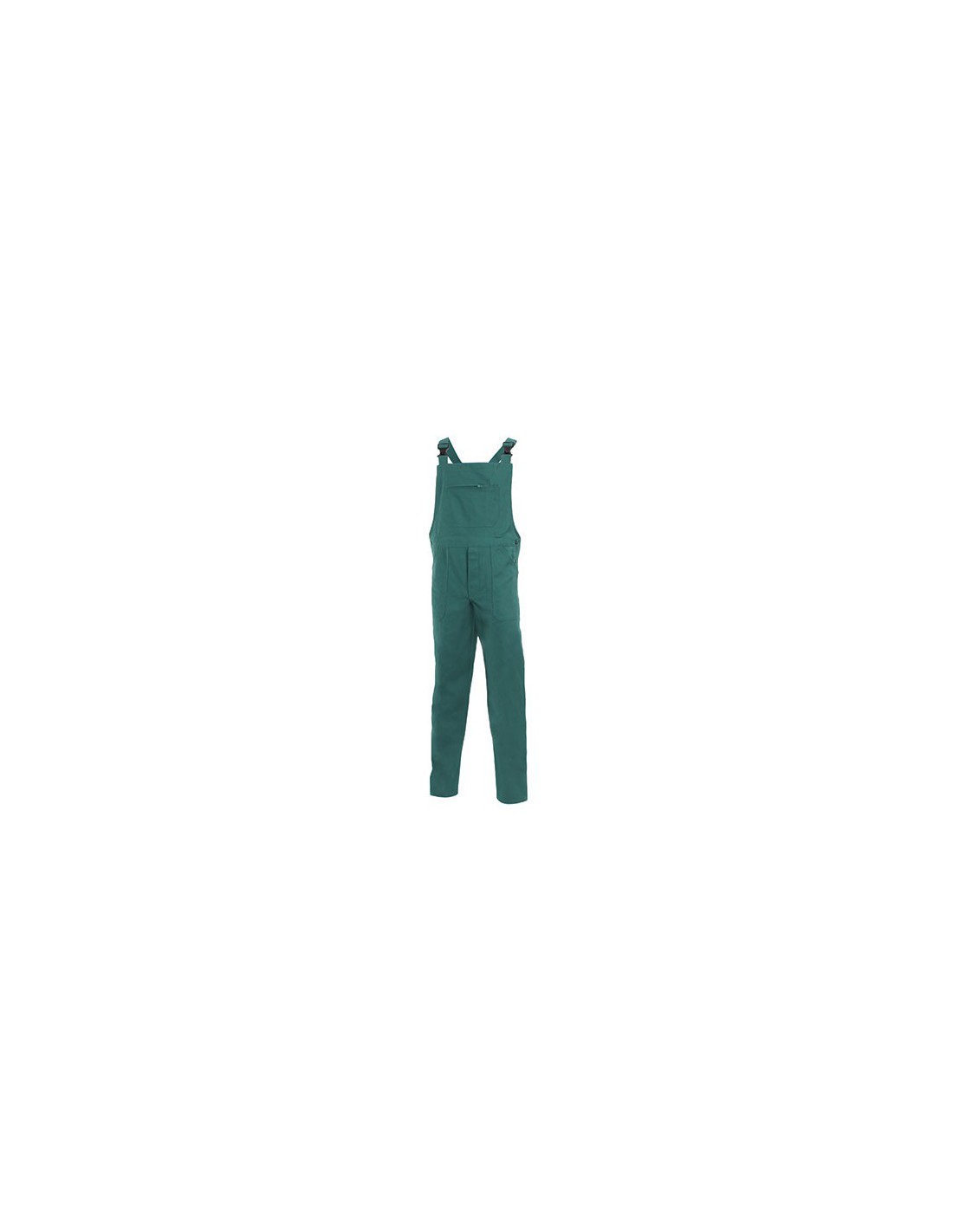 Forme générale Bretelles élastiques réglables par boucle polymère, bavette avec poche fermée par glissière, fermeture latérale par bouton, braguette à boutons sous patte,