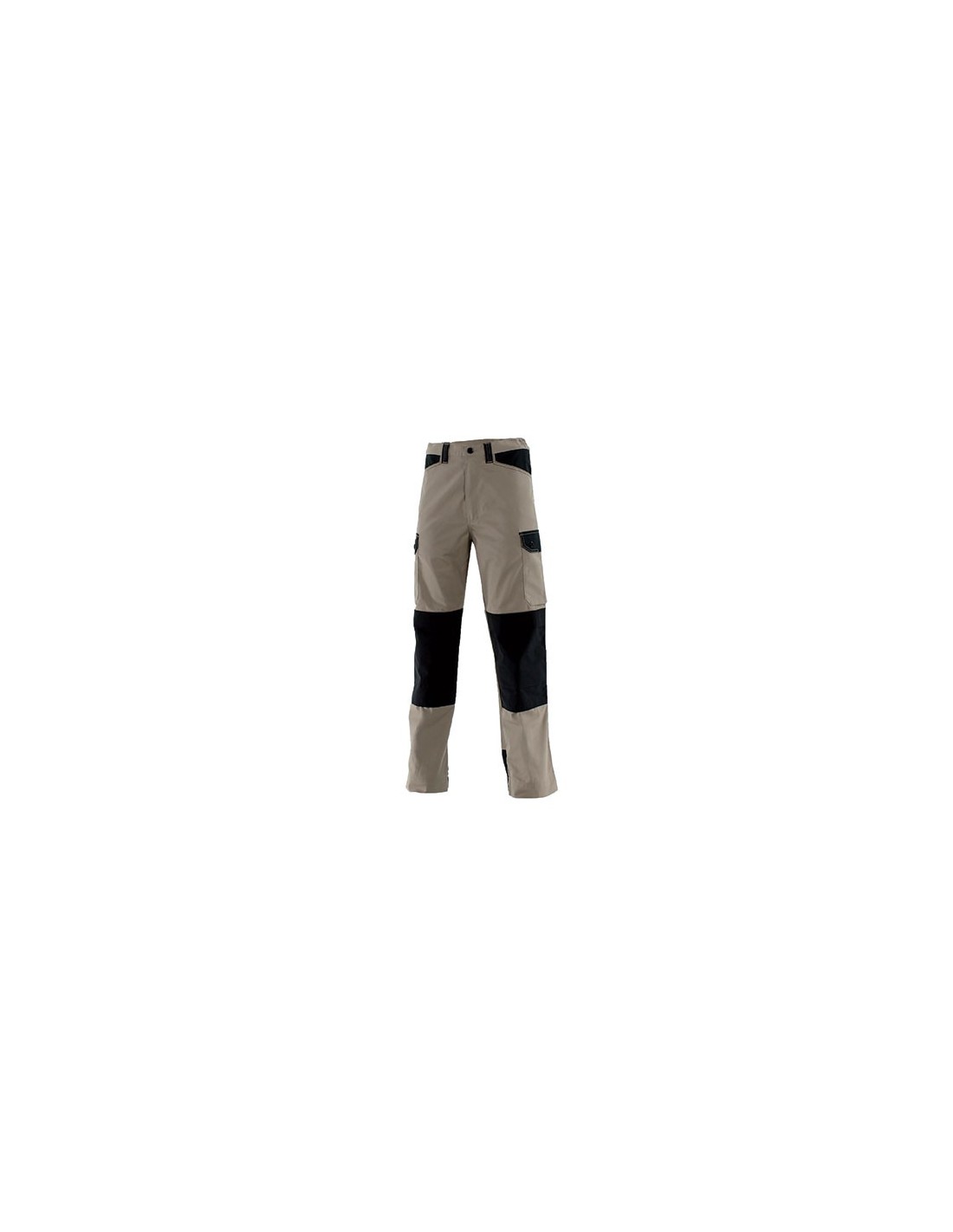 Forme générale Pantalon taille élastiques cotés, passants ceinture, braguette à glissière sous rabat, réhausse protège reins, 1 poche téléphone, 2 poches cavalières, 2 poches cuisses à soufflets avec rabat fermé, 1 poche mètre, 2 poches arrières, emplacements poches genouillères fermées par auto-agrippant, renforts tissu haute ténacité sur genoux et arrière bas de jambe