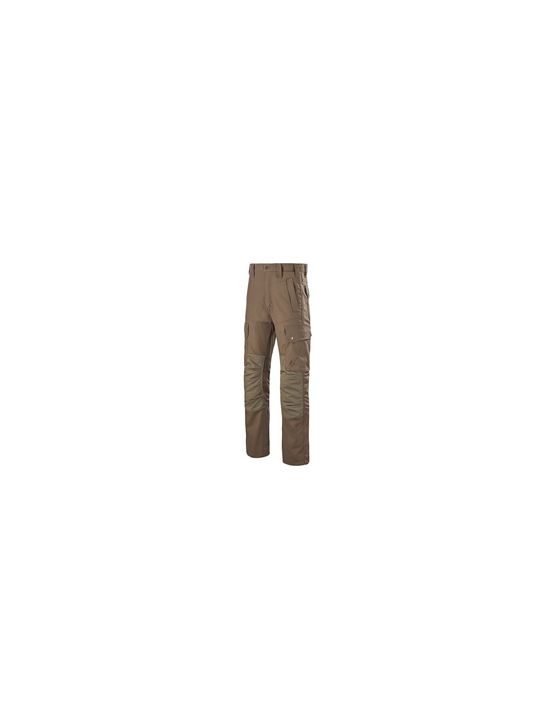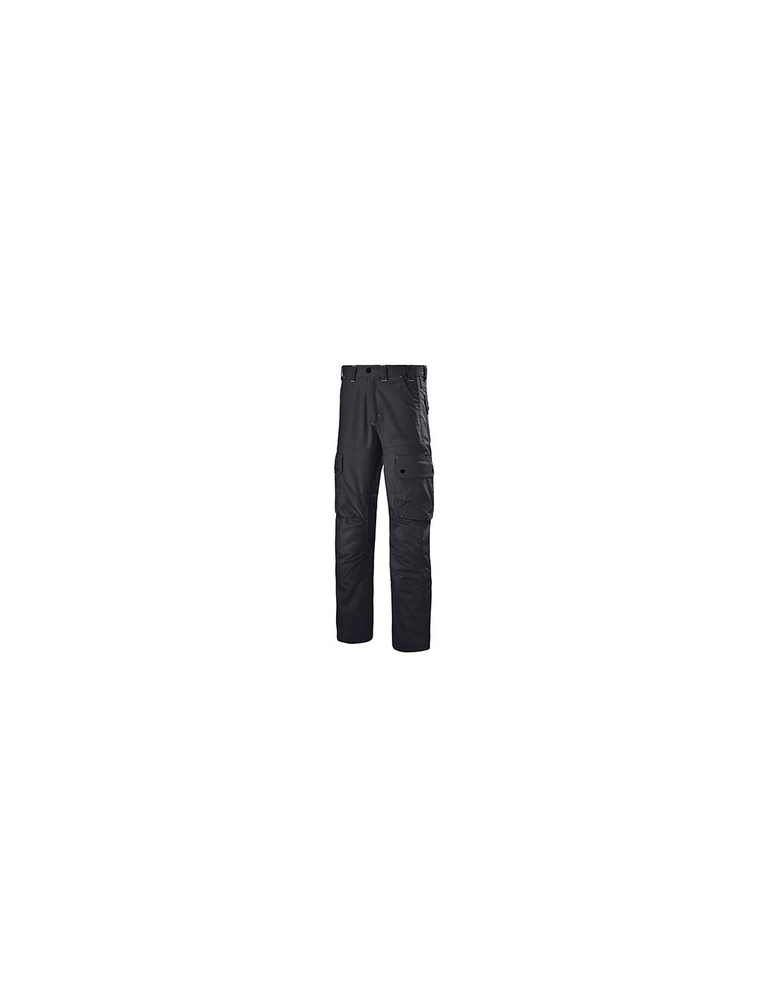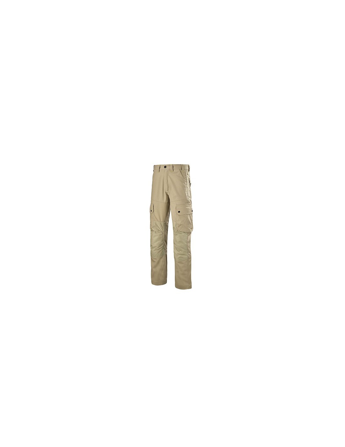 Forme générale Ceinture fermée par un bouton rivet, passants ceinture, braguette à glissière sous patte, rehausse dos protège reins, 2 poches à l'italienne, 2 poches cuisses à soufflets et rabat fermé, 1 poche mètre dans le rabat de la poche cuisse, 2 poches arrières dont 1 à rabat fermé, textile de renfort sur genoux, mercerie tout plastique, surpiqûres 3 aiguilles fond dos