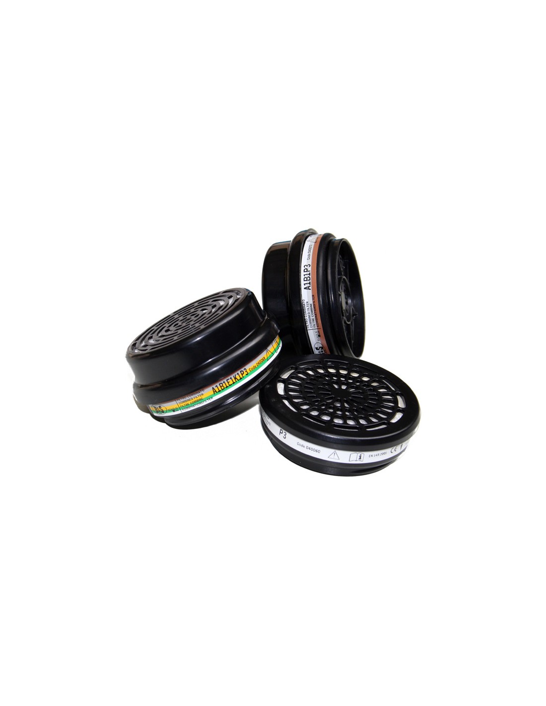 ABEK +P Brun-gris-jaune-vert-blanc A2 B2 E2 K2 P3 Combiné produits A+B+E+K ci-dessus + aérosols solides ou liquides, particules très fines et toxiques 340 gr. 11047