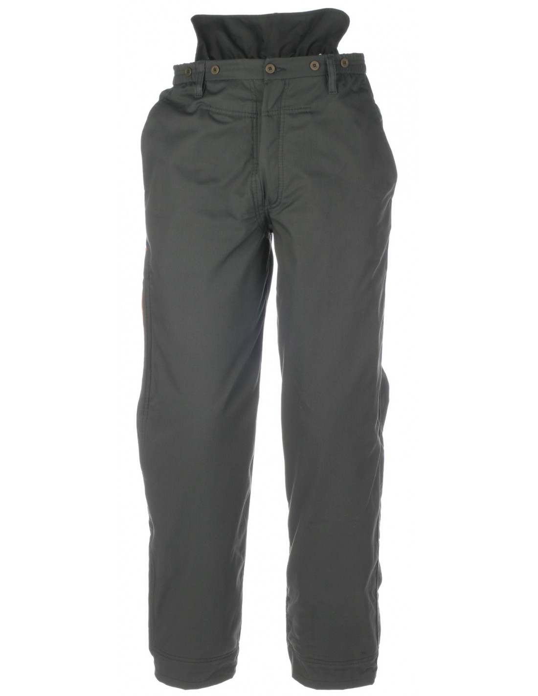 Description générale Pantalon taille ceinture élastique, bavette lombaire protège reins, braguette fermeture à glissière boutons prévus pour fixation de bretelles, montage triple coutures sur l'entre jambe, longueur moyenne 78 cm
