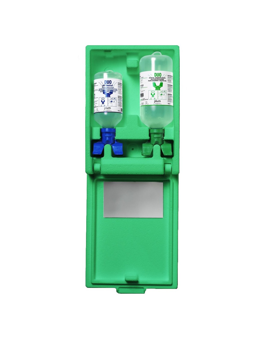 | Usage | Convient pour un lavage des yeux en cas de projections d'acide ou de bases. Avec le flacon de pH neutre 200 ml (bleu) les acides et les alcalins sont neutralisés en quelques secondes. Dans le compartiment voisin, la solution ophtalmique de 500 ml (verte) peut servir au nettoyage et à la réhydratation de l'œil jusqu'à l'intervention médicale |