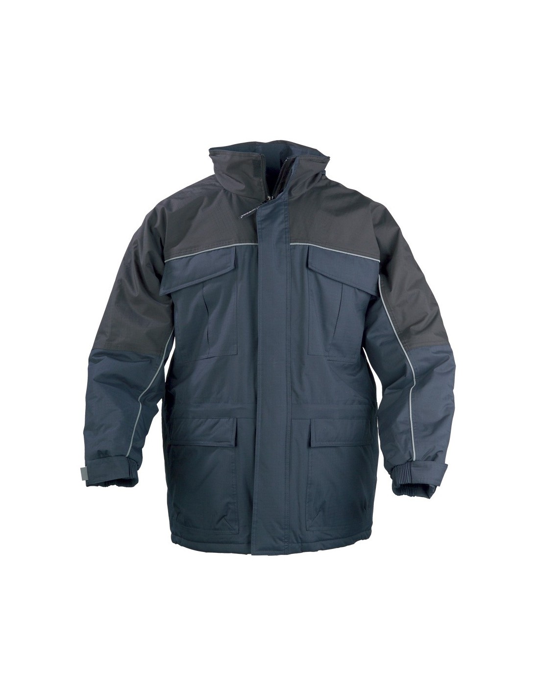 Extérieur Ripstop 100% polyester pongé enduit PVC imperméable coutures étanchées Veste intérieur 100% polaire 280 gr/m² Liséré rétro réflichisant devant et dos |