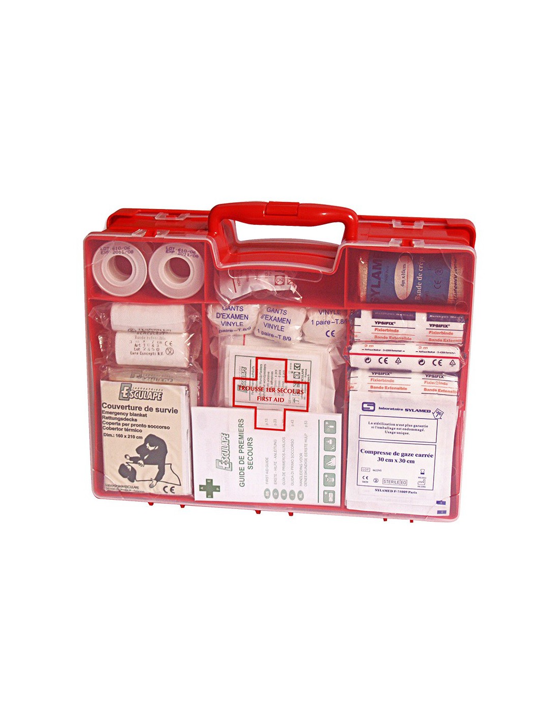Pour votre information, l’article R 4224-14 du Code du Travail oblige les lieux de travail à être équipés d’un matériel de secours adapté à la nature des risques et facilement accessible. Tous les chantiers de B.T.P et les ateliers, les équipes d’artisans ou les véhicules utilitaires doivent donc obligatoirement disposer de ce matériel.